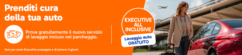 E, grazie alla promozione Executive All Inclusive, tutti i clienti che prenotano i parcheggi Executive per almeno 3 giorni con pre-pagamento online, potranno selezionare il lavaggio gratuito: