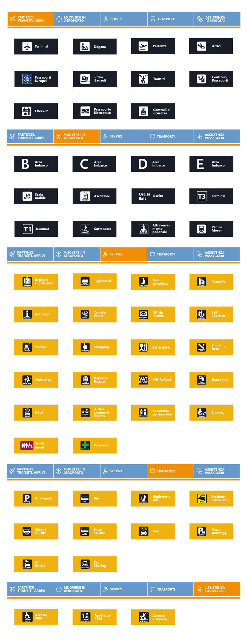 Muoviti facilmente in aeroporto e trova sempre ciò che ti occorre consultando quando e dove vuoi la segnaletica presente nella guida.